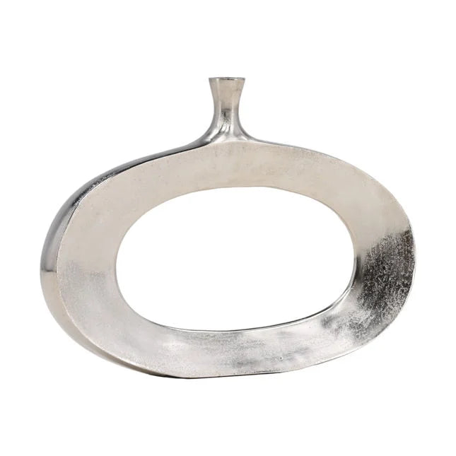 Made from sleek aluminum in a stunning silver finish, this vase adds a touch of elegance to any room. Perfect for displaying your favorite blooms, it effortlessly combines style and functionality. Upgrade your space with this beautiful statement piece.